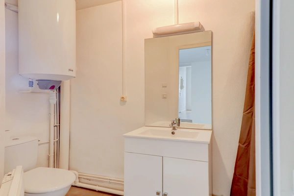 À 100 m de la gare de Laval, découvrez cet appartement T1 bis situé au 1er étage d'un petit immeuble calme de 10 lots (9 appartements et 1 garage) actuellement en cours de mise en copropriété. Le logement comprend une pièce de vie lumineuse avec coin cuisine aménagé (meubles haut et bas, plaques, hotte et réfrigérateur), une chambre séparée et une salle de bain avec WC. Chauffage individuel électrique, fenêtres PVC double vitrage, logement libre de toute occupation. Classé DPE E, il passera automatiquement en D dès janvier 2026 selon la nouvelle réglementation. Un devis d'isolation extérieure et de ravalement est disponible : environ 7 000 EUR par appartement, permettant d'améliorer la performance énergétique et l'esthétique du bâtiment. La toiture est en bon état (quelques ardoises à remplacer avant la vente). Les parties communes nécessitent un simple rafraîchissement.